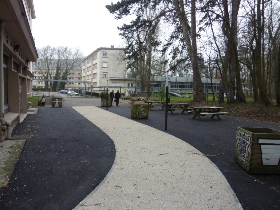 Création d'espaces paysagers (Parvis, terrasses et cheminement piéton sécurisé)