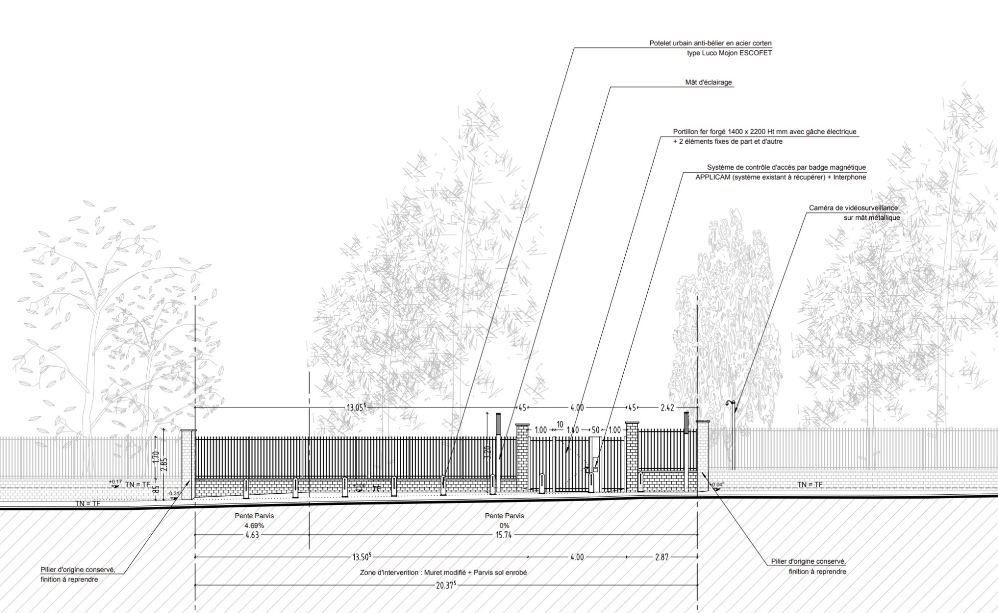 Création d'espaces paysagers (Parvis, terrasses et cheminement piéton sécurisé)